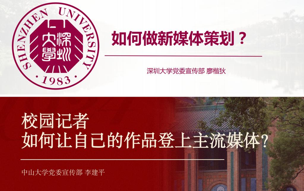 本次年会还特邀深圳大学党委宣传部廖楷狄、中山大学党委宣传部李建平两位老师做经验分享和业务培训。廖楷狄围绕“如何做好新媒体策划”,提出了在新媒体策划中要注重流量整合、创意叠加和提升文案写作技巧等建议。李建平聚焦“校园记者如何让自己的作品登上主流媒体”,讲解了如何从身边发掘新闻点、对新闻线索进行包装,以及新闻消息、通讯的写作技巧等。